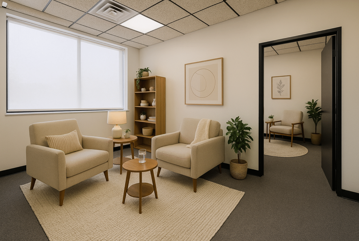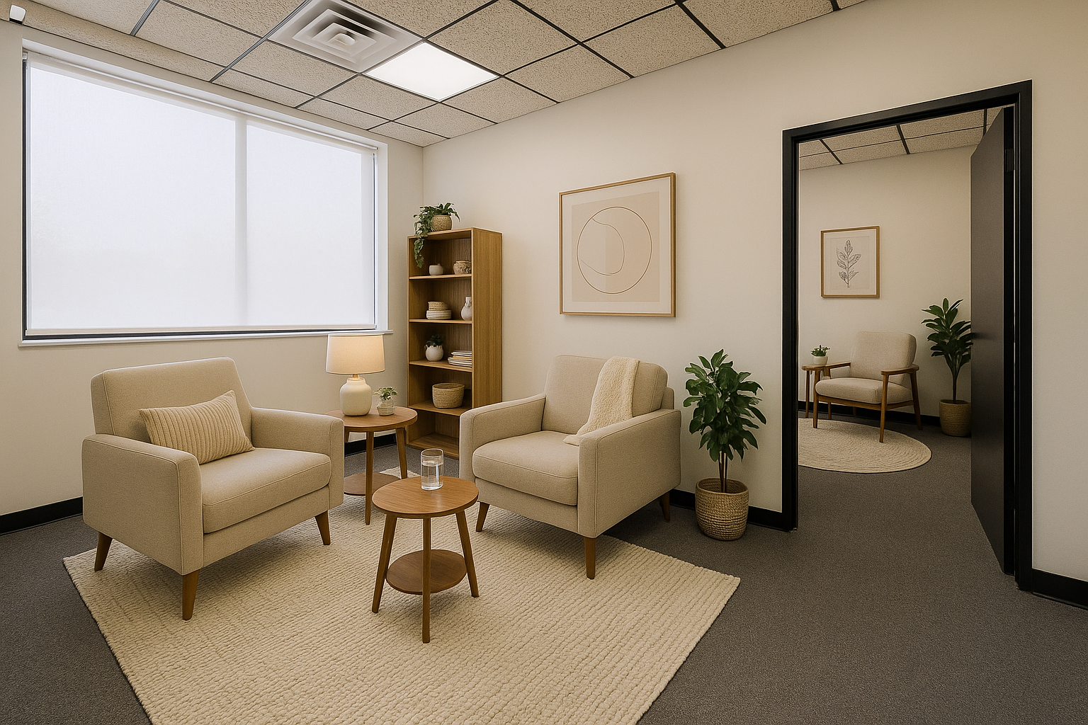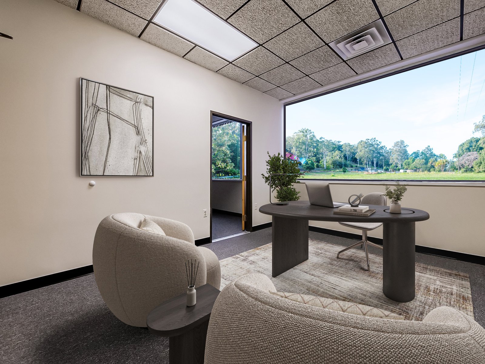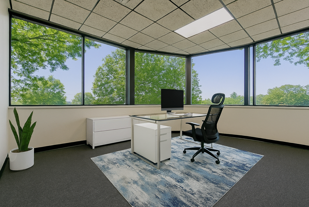 • Completely Renovated 2025 including 2-story foyer with skylights, modern kitchenette and professional conference room